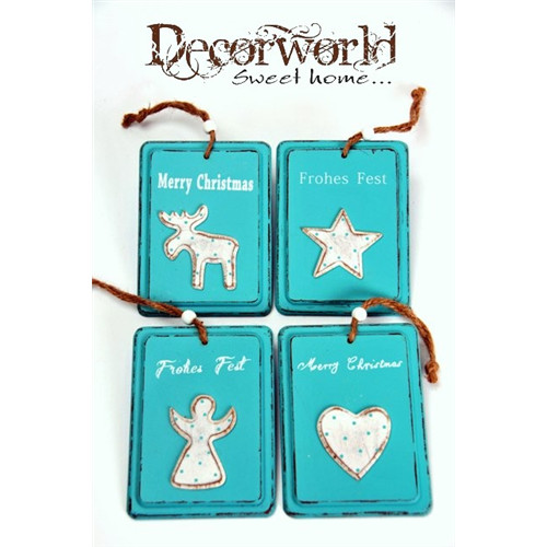 Dísz akasztós csillag-szív-angyalrénszarvas fa 25x11x14cm kék 4 éle