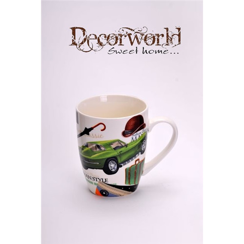 Bögre autós mintás dobozban porcelán színes 3 féle
