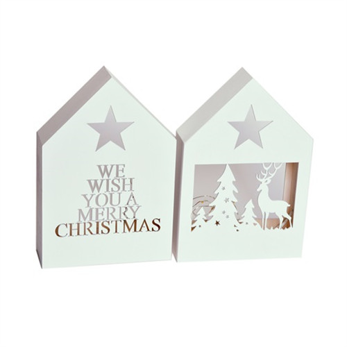 Házikó LED világítással fa 18x6,3x27cm fehér