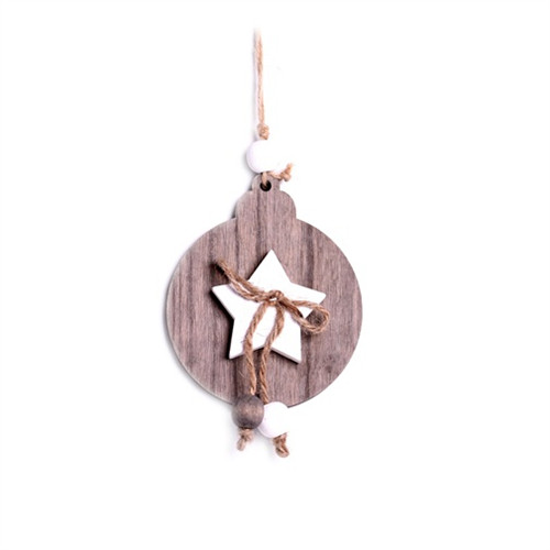 Akasztós dísz kerek csillaggal fa 20x8cm szürke-fehér