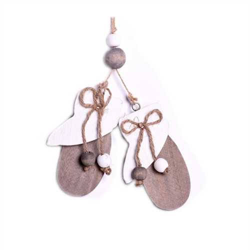 Akasztós dísz kesztyű fa 30x9cm szürke-fehér