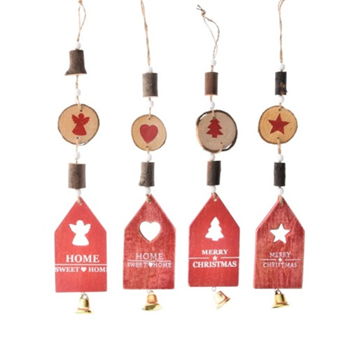 Akasztós dísz házikó fa 41x6,5x12 cm - Piros 4 féle