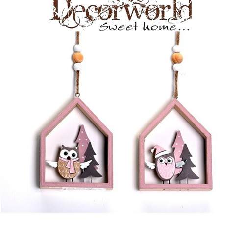 Akasztós dísz fenyőfa fa 10x3x12,5cm fehér-rózsaszín 2 féle