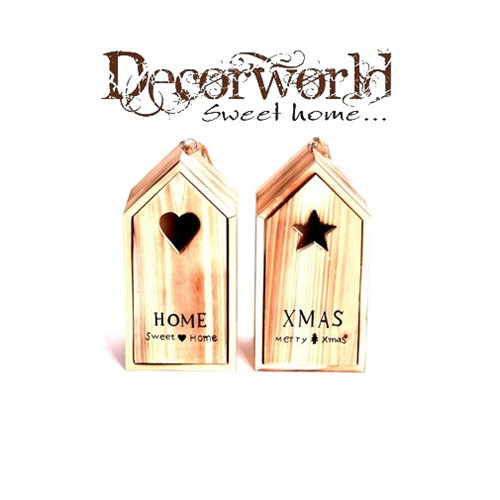 Akasztós dísz házikó felirattal fa 12x10x24cm natúr