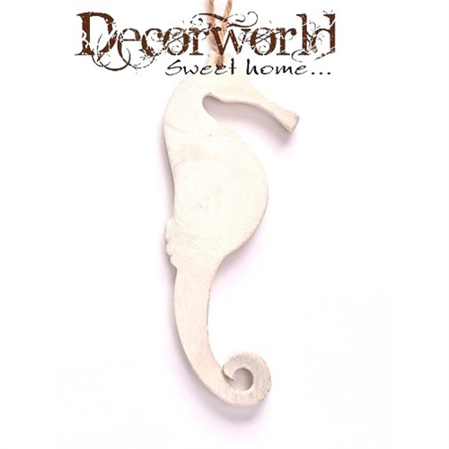 Akasztós dísz csikóhalas fa 5,5x0,7x15cm - Fehér