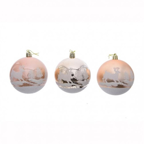 Gömb műanyag 8cm - Barack-fehér erdei mintával S/3