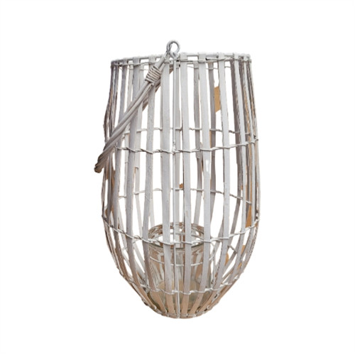Lámpás füllel, üveggel vessző 45x26cm - Fehér