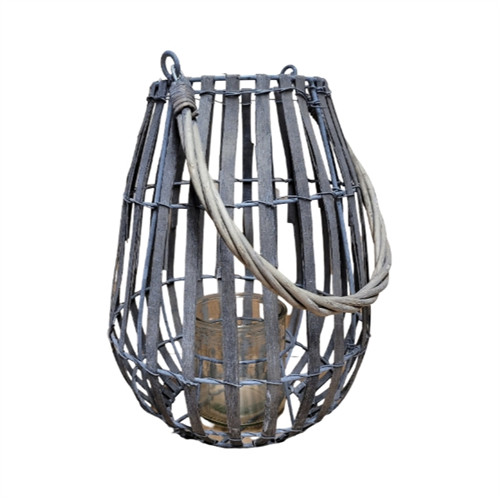 Lámpás füllel, üveggel vessző 35x32cm - Szürke