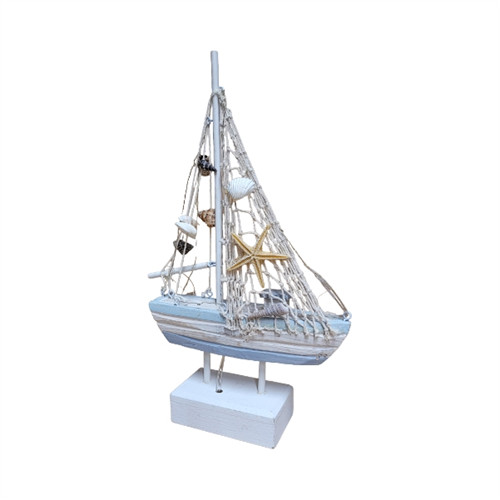 Hajó led világítással fa 18x5,5x32cm - Kék/fehér