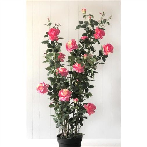 Rózsabokor selyemvirág műanyag kaspóban 167 cm - Rózsaszín/sárga