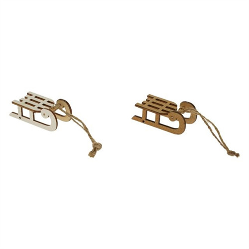 Szánkó fa 6x3cm akasztós - Barna, Drapp S/6