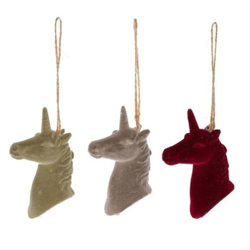 Egyszarvú lófej flokkolt akasztós poly 5,5x3,5x9 cm bordó/szürke/zöld 3 féle