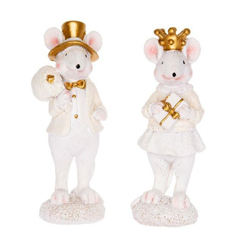 Egérpár álló poly 3,5x3x10cm - Fehér,arany 2 féle