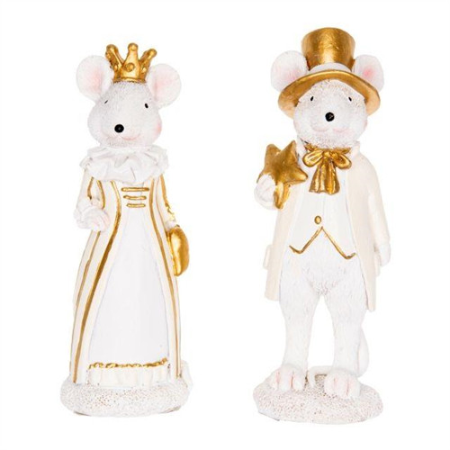 Egérpár álló poly 5x4x14,5cm - Fehér,arany 2 féle