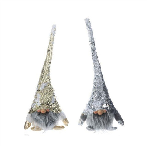 Manó glitteres sapkában textil 25x10x40cm - Ezüst,arany 2 féle