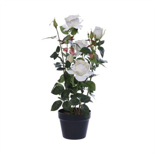 Rózsabokor selyemvirág műanyag kaspóban 61 cm - Fehér