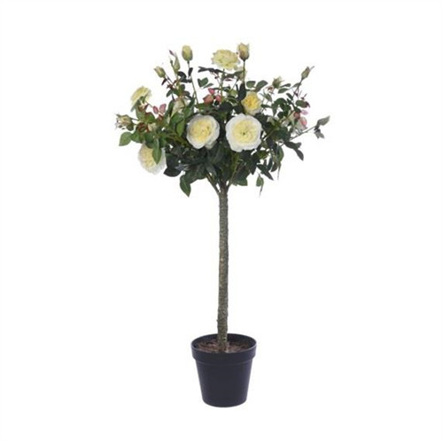 Rózsabokor selyemvirág műanyag kaspóban magasszárú 121 cm - Sárga