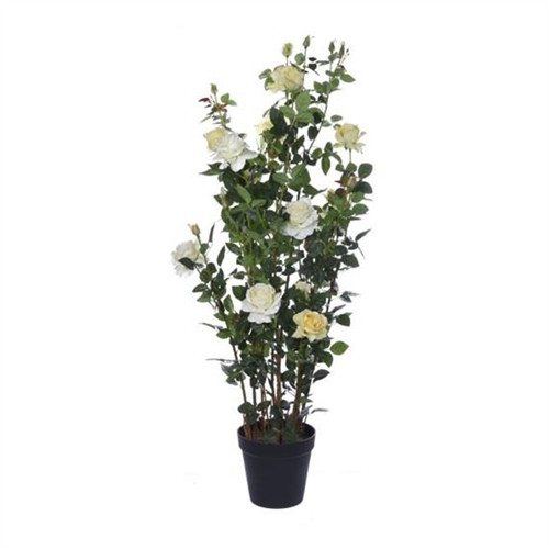 Rózsabokor selyemvirág műanyag kaspóban 167 cm - Sárga