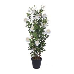 Rózsabokor selyemvirág műanyag kaspóban 112 cm - Fehér