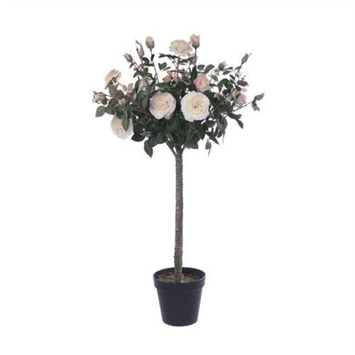 Rózsabokor selyemvirág műanyag kaspóban magasszárú 121 cm - Barack