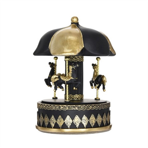 Körhinta forgó, zenélő poly 11x11x16,5cm - Fekete-arany