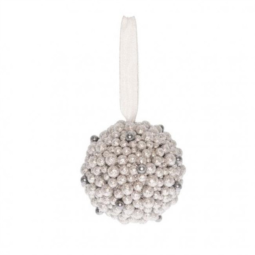 Gömb bogyókból glitteres akasztható 14cm - Ezüst