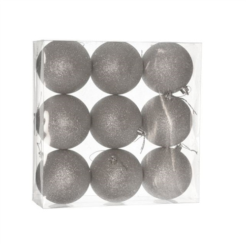 Műanyag gömb dobozban 8cm glitteres - Ezüst S/9