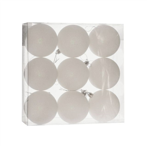 Műanyag gömb dobozban 8cm glitteres - Fehér S/9