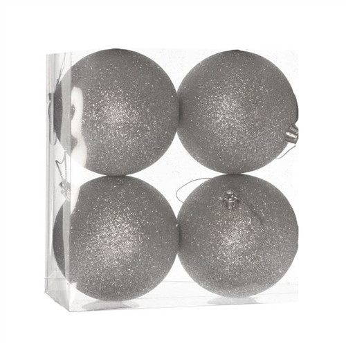 Műanyag gömb dobozban 10cm glitteres - Ezüst S/4