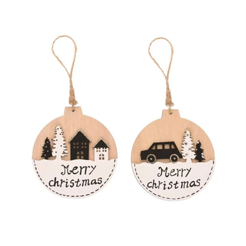 Gömb fa karácsonyi mintával, akasztós 11x10x0,8cm - 2 féle