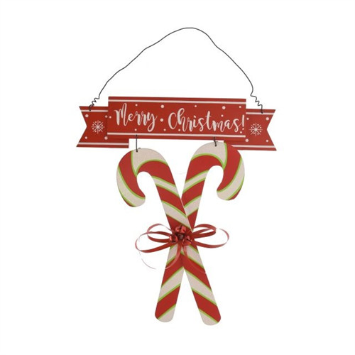 Tábla karácsonyi nyalóka "Merry Christmas" felirattal akasztós fa 20x2x30cm - Fehér/piros