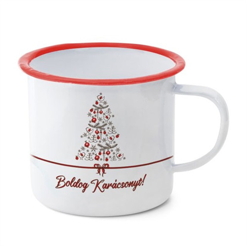 Bögre bádog "Merry Christmas" felirattal, karácsonyfával 11x11x10cm