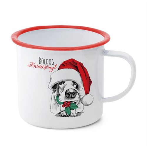 Bögre Bádog "Merry Christmas" felirattal, kutyával 11x11x10cm