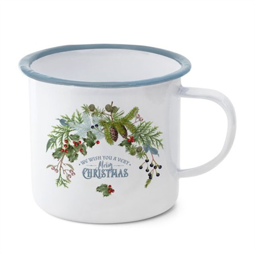 Bögre bádog "Merry Christmas" felirattal, girlanddal 11x11x10 cm