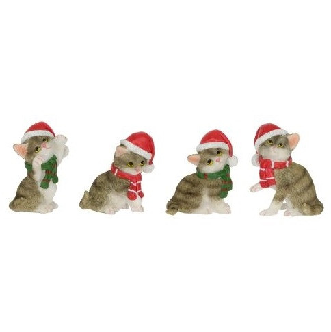 Cica mikulás sapkában, sállal ülő 4,3x3x5cm poly