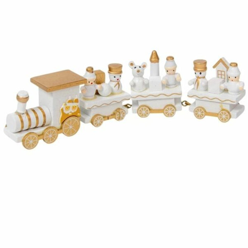 Vonat fa karácsonyi figurákkal 22,7x7,2x3cm - Fehér/arany