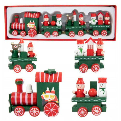 Vonat fa karácsonyi figurákkal 22,7x7,2x3cm - Piros/zöld
