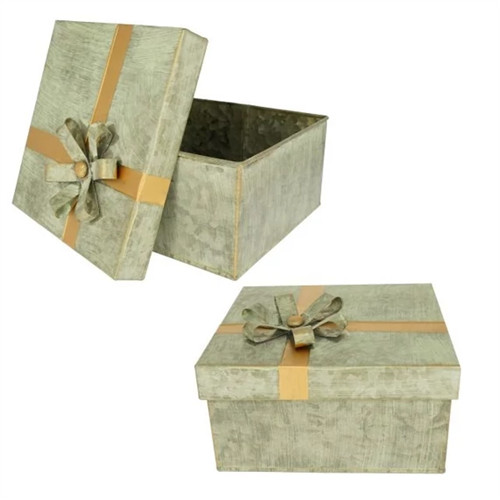Doboz szalaggal fém 24x24x14 cm, 19x19x9,5cm szett - Zöld, bronz S/2