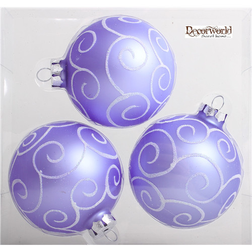 Kd. üveg Gömb matt cirádás lila 8cm S/3