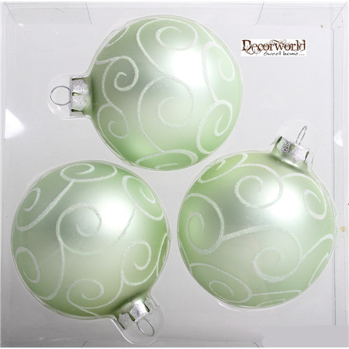 Kd. üveg Gömb matt cirádás zöld 8cm S/3
