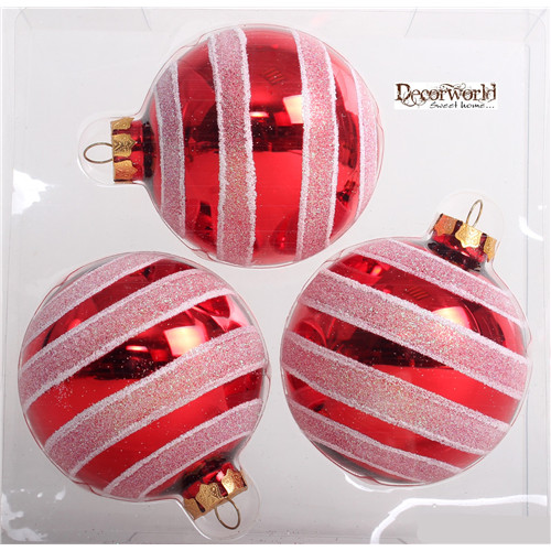 Kd. üveg Gömb fényes csíkos piros 8cm S/3