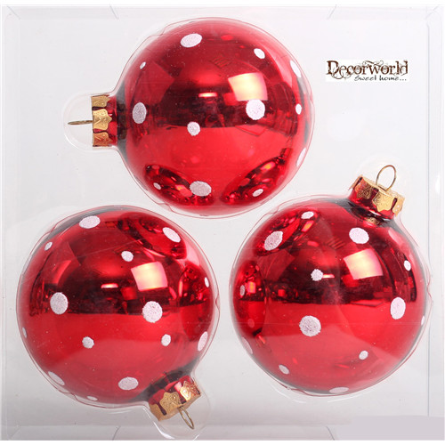 Kd. üveg Gömb fényes pöttyös piros 8cm S/3