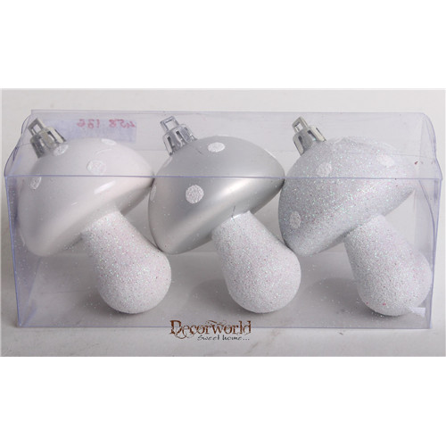 Akasztós dísz Gomba fényes/matt/gyöngyház 7cm - Fehér S/3