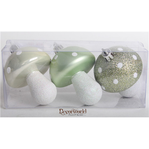 Akasztós dísz Gomba fényes/matt/gyöngyház 7cm - Zöld S/3