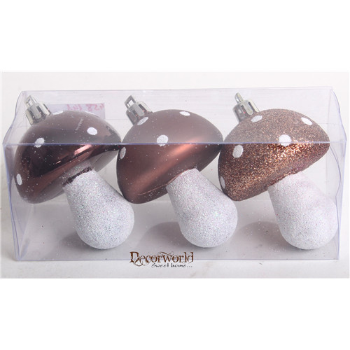Akasztós dísz Gomba fényes/matt/gyöngyház 7cm - Barna S/3