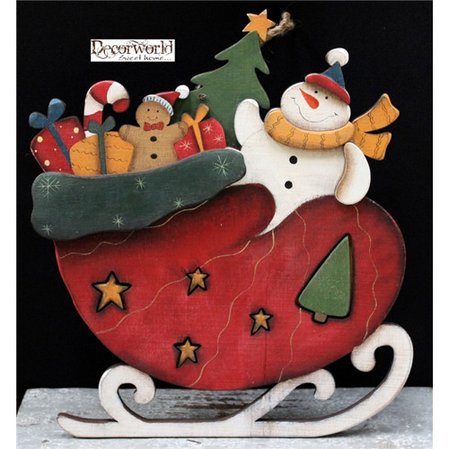 Fa akasztós szán zsák+hóember 30x26cm