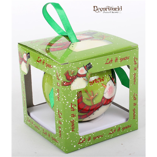 Gömb Piros/zöld Hóember díszdobozos 7,5cm