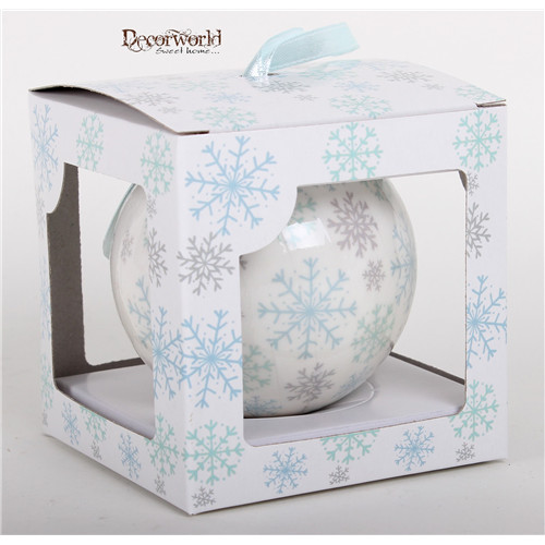 Gömb műanyag Jégkristály díszdobozos 7,5 cm - Világoskék/fehér