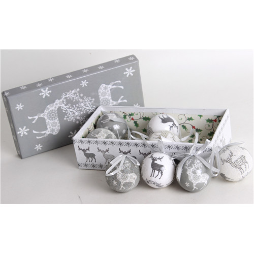 Gömb S/8db szürke/fehér szarvas 5cm