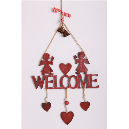 Fa kopogtató Welcome+Angyal piros 40x19cm